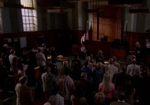 - Performers Tony Bill and Annabella Sciorra make an accidental appearance in this episode. After Judge Amanda Anderlee enters the courtroom, at the point right before everyone is seated, you can see a scene from the first episode. You can clearly make out Bill and Sciorra standing behind the table for the defense.