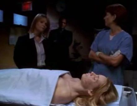 Dr. Rodgers informs Detectives Eames and Goren about the results of her examination on Nicole Wallace's body.